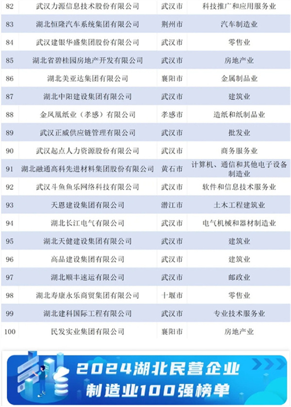 2024湖北民營企業(yè)百強榜單發(fā)布