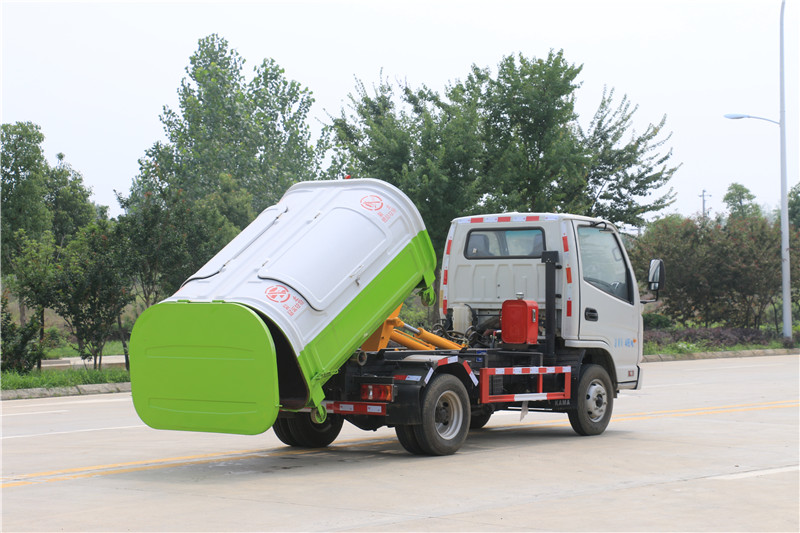 導讀:湖北程力國六凱馬汽油3方藍牌勾臂垃圾車(車廂可卸式垃圾車)…