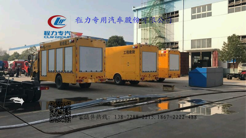 東風(fēng)天錦工程救險(xiǎn)車底盤配置:采用東風(fēng)原廠DFL1160BX1V的底盤,一排半可翻轉(zhuǎn)式駕駛室,帶導(dǎo)流罩,康明斯180馬力國五排放發(fā)動(dòng)機(jī),原廠空調(diào),原廠ABS,方向助力,6檔變速箱,9.00R-20鋼絲胎,軸距3800mm,整車外形尺寸7550mm*2400mm*3600mm.涉水深度600mm,