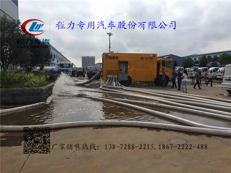 選裝配置:選裝行李架、爬梯、車頂工作臺(tái);選裝不同形狀、結(jié)構(gòu)的警示燈;選裝中隔斷(可選擇開門)、車身兩側(cè)可選開上掀門、盲窗、側(cè)開門;花紋鋁板;加裝設(shè)備工具柜、配電箱、發(fā)電機(jī)組、水泵、電焊機(jī)、空壓機(jī)等線路安裝外接電源系統(tǒng)、(室內(nèi)燈光照明、探照燈、高桿照明燈等);繞線盤,還可根據(jù)用戶不同需求加裝不同的維修搶險(xiǎn)設(shè)備、車身制作專用圖案或標(biāo)識(shí)。 東風(fēng)天錦工程救險(xiǎn)車、抗洪救災(zāi)車,搶險(xiǎn)車,抗洪吸水車,抗旱車 程力專用汽車股份有限公司最新研發(fā)的搶險(xiǎn)救援車,工程搶險(xiǎn)車,抗洪吸水車,應(yīng)急電源泵車,移動(dòng)水泵車。該車排水量1000立方/小時(shí),操作簡單,機(jī)動(dòng)性強(qiáng),真正實(shí)現(xiàn)了移動(dòng)水泵的概念,設(shè)備可滿足緊急排水搶險(xiǎn)的需要,并具備移動(dòng)電源功能。 設(shè)備采用東風(fēng)底盤改裝,總質(zhì)量12.5噸,發(fā)動(dòng)機(jī)功率127kw,排放標(biāo)準(zhǔn)達(dá)到國五標(biāo)準(zhǔn),3.8米軸距,帶空調(diào),方向助力,最大涉水深度600mm。 發(fā)電機(jī)備用功率120kw,額定輸出功率110kw,額定頻率50HZ,額電壓230/240V,康明斯發(fā)動(dòng)機(jī)。電子調(diào)速,啟動(dòng)電瓶,電瓶總閘。 車廂內(nèi)專設(shè)接地樁頭,連接方便,在機(jī)組工作時(shí),連接接地線,保護(hù)作業(yè)安全。機(jī)電設(shè)備有嚴(yán)密的防漏電保護(hù)措施。 控制系統(tǒng)采用智能控制,集中控制,中文界面,具有自動(dòng)障礙保護(hù)功能,選用優(yōu)質(zhì)電器元件,性能穩(wěn)定,安全可靠。 該車配備一臺(tái)一體式真空輔助自吸排污泵,流量1000立方/小時(shí),電機(jī)功率55kw,揚(yáng)程12米,吸程8米,安裝在車尾部,方便拆卸水管及出水,該泵無需灌水,無需額外增加水環(huán)泵輔助抽真空,性能好,出水快,水泵啟動(dòng)采用軟啟動(dòng)。抽水管為兩個(gè)八寸管,采用美國進(jìn)口透明水管,質(zhì)量輕,拿取方便,配3.5米長水管4根。接頭都采用東方式快速接頭,使用方便,密封效果好,每個(gè)進(jìn)水口配置鴨嘴式接頭,實(shí)現(xiàn)低水位抽吸作業(yè)。各進(jìn)水口配90度彎頭。 排水口分為4個(gè)5寸出水口,每個(gè)出水口66米出水軟管,(33米每卷)軟管為快速接頭連接,操作方便,并在接頭出設(shè)有防松保險(xiǎn)裝置,安全可靠。材質(zhì)為雙面PVC,耐磨,耐壓。 發(fā)電機(jī)組:發(fā)動(dòng)機(jī)備用功能120KW額定輸出功率110KW,額定頻率50HZ,額電壓230/400V,康明斯發(fā)動(dòng)機(jī),調(diào)速方式:電子調(diào)速,啟動(dòng)電瓶,電瓶總閘