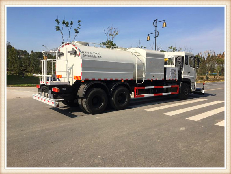 湖北程力國六東風天龍后雙橋CLW5250GQXD6大型路面清洗車車輛主要配置 序號 | 項目 | 產品型號 | 備注CLW5250GQXD6 | 1 | 底盤 | DFL1250D4 | 4350+1350,國六排放 | 2 | 取力器 | 4205F85E3-010AS | | 3 | 低壓水泵 | 80QZB-60/90 | 天億 | 4 | 低壓水泡 | GP-50 | 天億 | 5 | 液壓系統 | 多路換向閥 | | 6 | 高壓水泵 | GTM | 進口 | 7 | 高壓噴嘴 | | 美國進口 | 8 | 氣路系統 | 閥,氣缸 | 以賽亞 | 9 | 副發動機 | JX493ZG3 | 江鈴 | 10 | 低壓球閥 | | 中聯 | 11 | 高壓球閥 | | 中聯 | 【整車技術參數】 | 產品名稱 | CLW5250GQXD6型清洗車 | 產品商標 | 程力威牌 | 總質量(Kg) | 25000 | 罐體容積(m3) | 13.22 | 額定載質量(Kg) | 12665,12590 | 外形尺寸(mm) | 10620,10520×2530×3150 | 整備質量(Kg) | 12215 | 貨廂尺寸(mm) | ×× | 軸數 | 3 | 軸距(mm) | 4350+1350,5350+1350,5700+1350,4600+1350,4800+1350 | 底盤型號 | DFH1250D4 | 底盤名稱 | 載貨汽車底盤(二類) | 外形尺寸(mm) | 9270,9355,10270,10355,10705,9650,9605,9720×2500,2530×3075,3190,3370,3630,3150 | 輪胎數 | 10 | 燃料種類 | 柴油 | 輪胎規格 | 295/80R22.5 18PR,11.00R20 18PR | 排放標準 | GB3847-2005,GB17691-2018國Ⅵ | 發動機型號 | 發動機生產企業 | 排量(ml) | 功率(Kw) | D6.7NS6B290 DDi75E350-60 DDi75E300-60 | 東風康明斯發動機有限公司 東風商用車有限公司 東風商用車有限公司 | 6700 7500 7500 | 213 257 220 | 湖北程力國六東風天龍后雙橋CLW5250GQXD6大型路面清洗車多方位圖片: