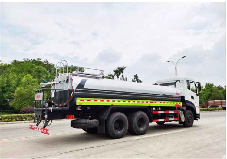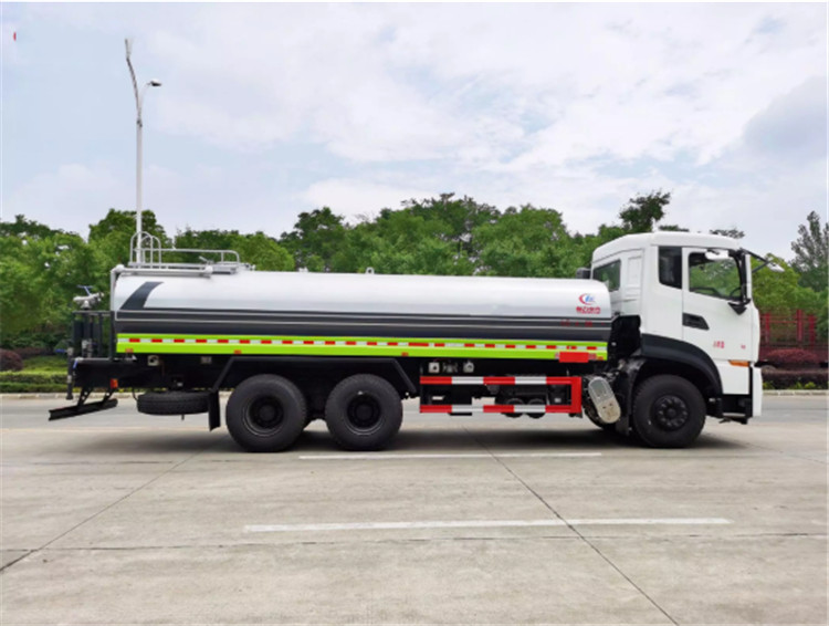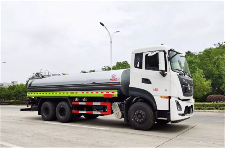 東風天龍KL/VL后雙橋灑水車是一款采用國六排放標準東風天龍后雙橋原裝底盤改裝的環衛車,該車配置豪華,駕乘舒適,該車罐體容積:18立方米,標配前沖、后灑、側噴、后平臺高炮,是園林綠化、小區物業、公路養護的常用車型。 國六東風天龍后雙橋18方高端灑水車(綠化噴灑車)底盤配置:采用東風天龍后雙橋原裝底盤,東風天龍豪華駕駛室,4400+1350mm軸距,搭載國六(國Ⅵ)東風康明斯290馬力柴油發動機,功率213kw;東風商用DDi350馬力柴油發動機,功率257kw,國六排放,陜齒法士特9檔變速箱,11.00R20鋼絲胎/295真空胎,前橋5T,后橋雙10T,方向助力,斷氣剎,排氣制動,原裝空調,行駛記錄儀,多媒體顯示屏,電動門窗,中控鎖,氣囊座椅,ABS。 國六東風天龍后雙橋18方高端灑水車(綠化噴灑車)專用配置:罐體容積:18立方米,罐體鋼板為4mm碳鋼Q235材質專用容積板一次成型,罐內隔板具有防波作用,以減輕汽車行駛時罐體液體沖擊;配大功率專用灑水泵,泵可自吸自排;整車前沖、后灑、側噴、后平臺帶綠化灑水炮,灑水炮可全方位旋轉,可連續調成直沖狀、大雨、小雨、毛毛雨;前封頭帶水位計,后平臺主管路帶1寸澆花接口,后爬梯,帶1個消防接頭,帶1個自流閥,1個過濾裝置。